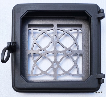 Usa soba din fonta cu geam termorezistent.