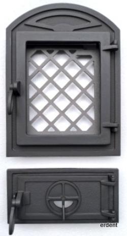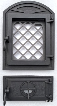 Garnitura de usa din fonta cu geam termorezistent. Finisaj: negru-mat