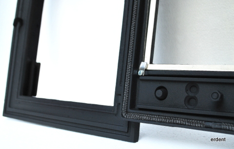 Usa din fonta turnata cu geam termorezistent.