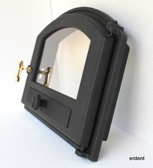 Usa din fonta pentru cuptor cu vitraj din sticla termorezistenta Robax (made in Germany). Trap de reglare aer.