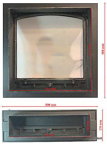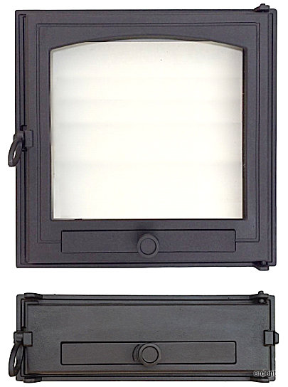 Set usa din fonta tip Finlanda cu sticla termorezistenta Robax. Panou de usa boltita.