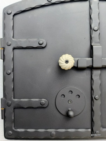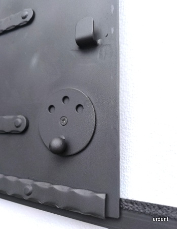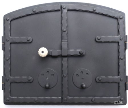 Usa din otel pentru cuptoare de copt paine. Maner din portelan cu deschidere centrala, tiraj de aer reglabil.