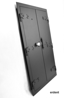Usa din otel pentru afumatoare cu deschidere centrala si maner portelan. Etansare cu snur ceramic !