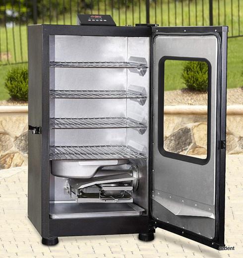 Afumatoarea BBQ Smoker digitalizata poate fi conectata oriunde in aer liber cu existenta de priza electrica (220 V). Arzator de tamaie, 4 gratare, rezervor apa, recipient ptr. picurarea grasimilor. Garantie 2 ani.